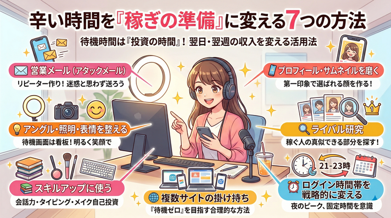 - 待機時間は工夫次第で「稼ぎの準備時間」になる——営業メール・プロフィール改善・スキルアップで、待機は投資の時間に変わります