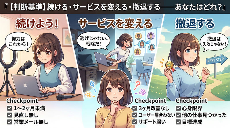 【判断基準】続ける・サービスを変える・撤退する——あなたはどれ?