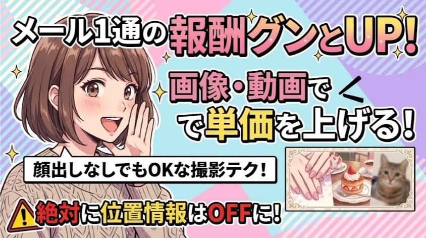 | 画像付きメール受信 | 25円〜50円/1通 | テキストより高単価 |
